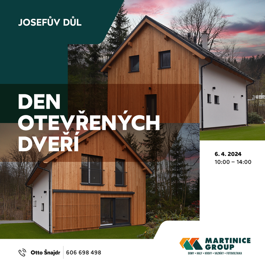 Dne 6. 4. 2024 v čase od 10:00 do 14:00 hod. Vás zveme na Den otevřených dveří, a to konkrétně na prohlídku nově postaveného patrového rodinného domu v obci Josefův Důl (okres Jablonec nad Nisou).