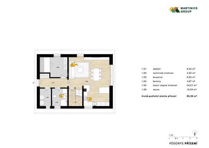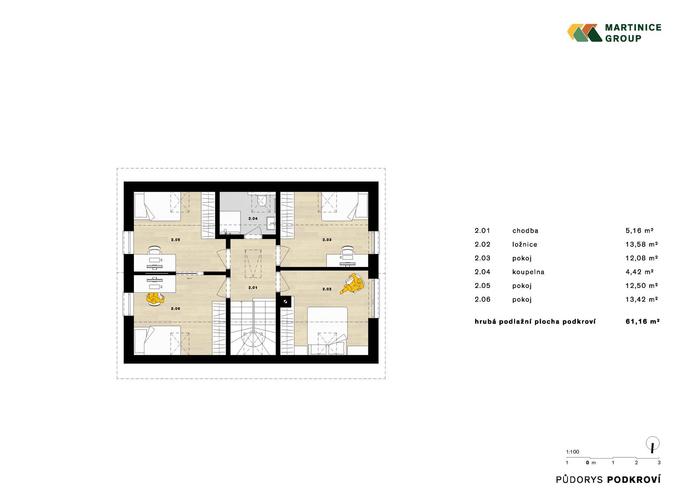 Individuální rodinný dům: jedná se o tvarově jednoduchý patrový dům se sedlovou střechou o dispozici 5+kk, který poskytuje komfortní bydlení bez jakýchkoliv omezení.