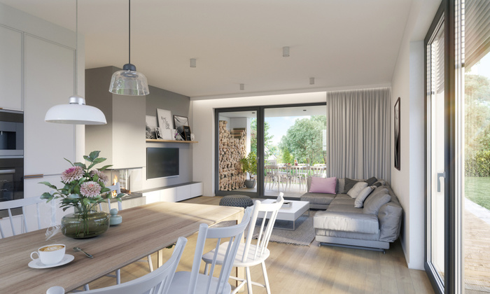 Při návrhu byl kladen důraz na propojení všech obytných místností se zahradou.