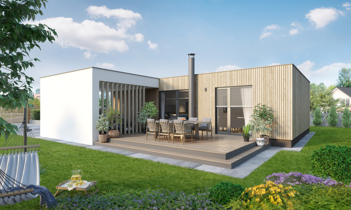Na hlavní obytnou místnost a ložnici navazuje venkovní terasa.
