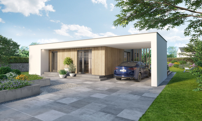 Jedná se o jednoduchý moderní přízemní rodinný dům, bungalov.