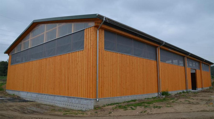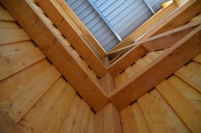 - Nosná stěnová konstrukce doplněná o lepené BSH sloupy