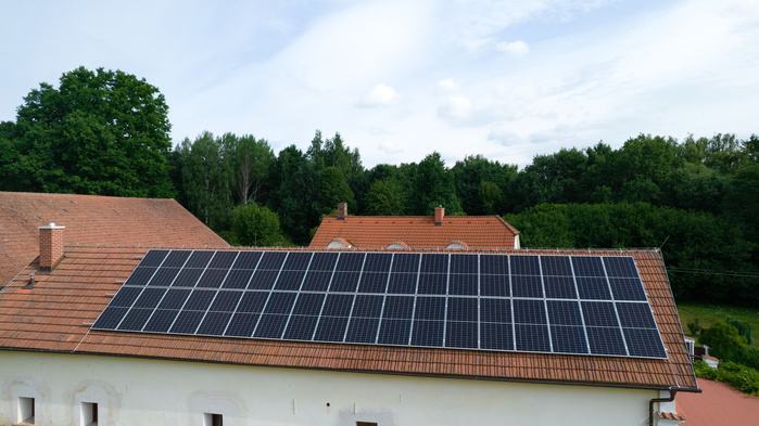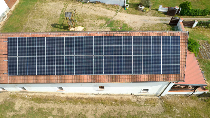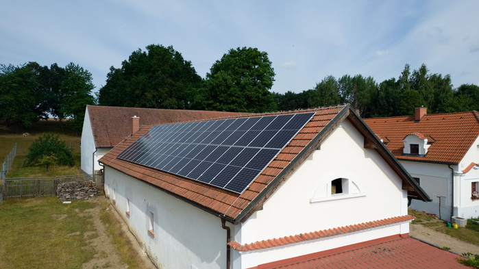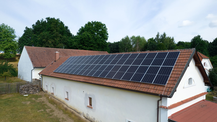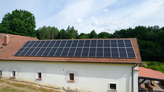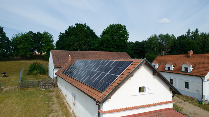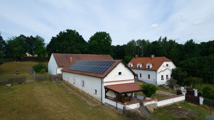 FVE elektrárna o celkovém instalovaném výkonu 17,28 kW (36 panelů) je nainstalována na hospodářské budově. Sedlová střecha je orientována jižně. Vyrobená elektřina je ukládána do baterií o celkové kapacitě 17,40 kWh a j využívána v přilehlém rodinné domě. Investor splnil podmínky pro čerpání dotací z programu Nová zelená úsporám.