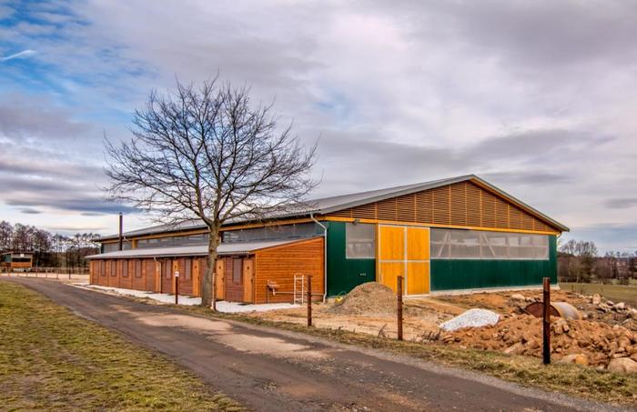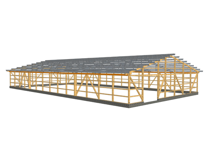 - Nosná stěnová konstrukce doplněná o lepené BSH sloupy