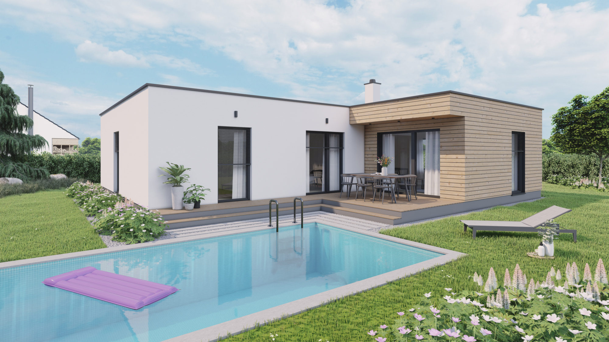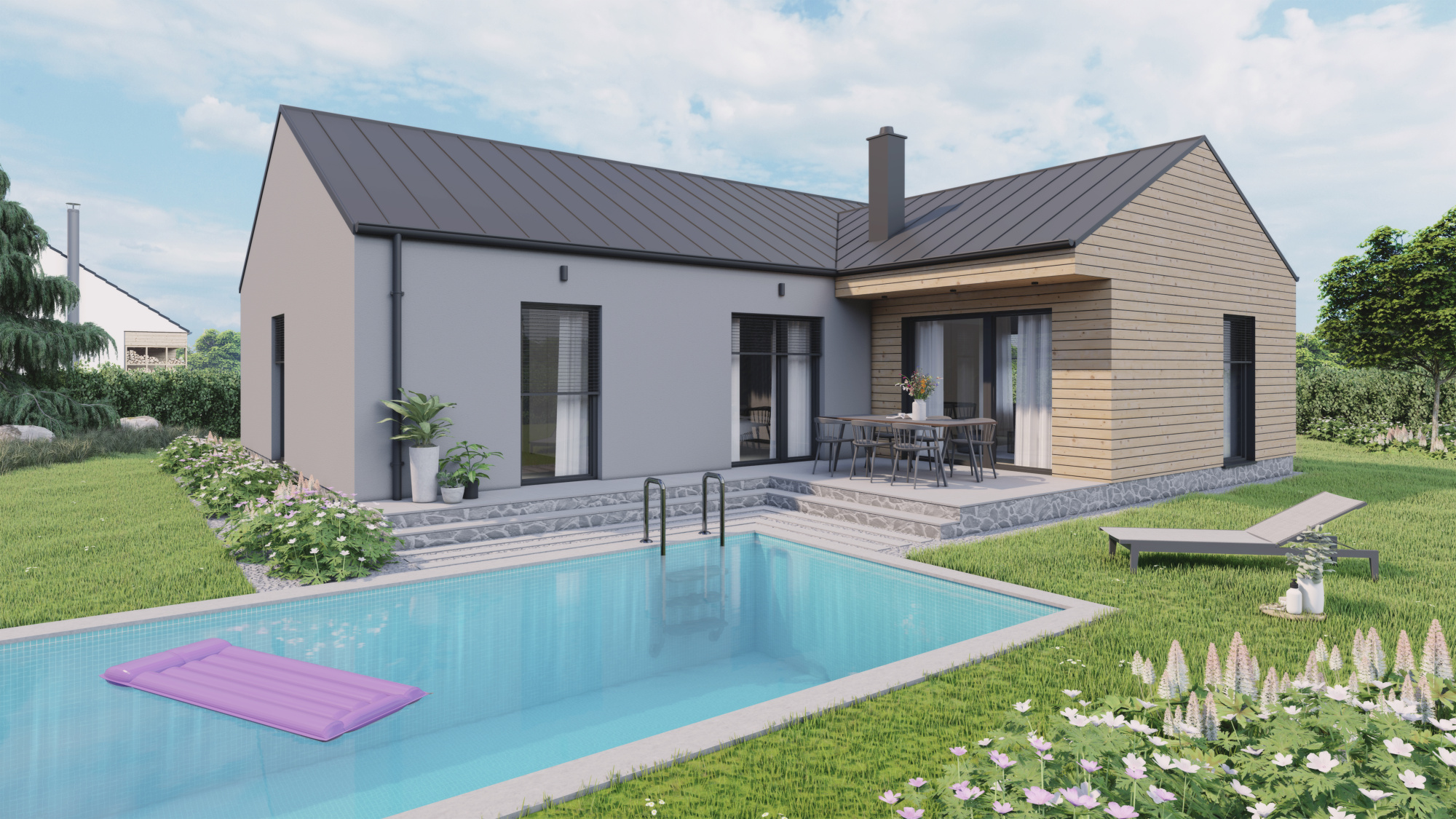 Tento dům umožňuje variantní provedení typu střechy, viz vizualizace.
