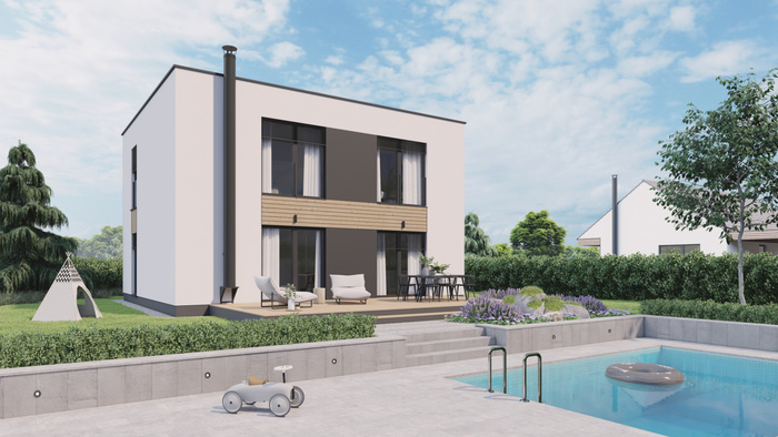 Tento dům umožňuje variantní provedení typu střechy, viz vizualizace.