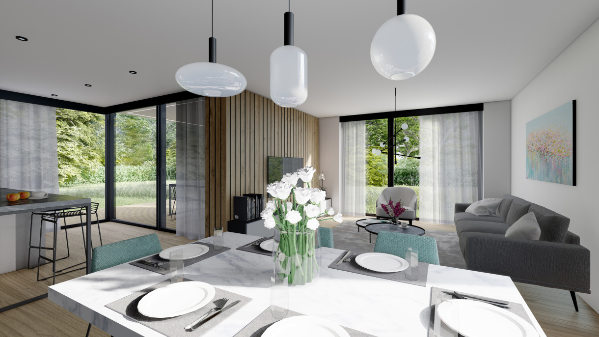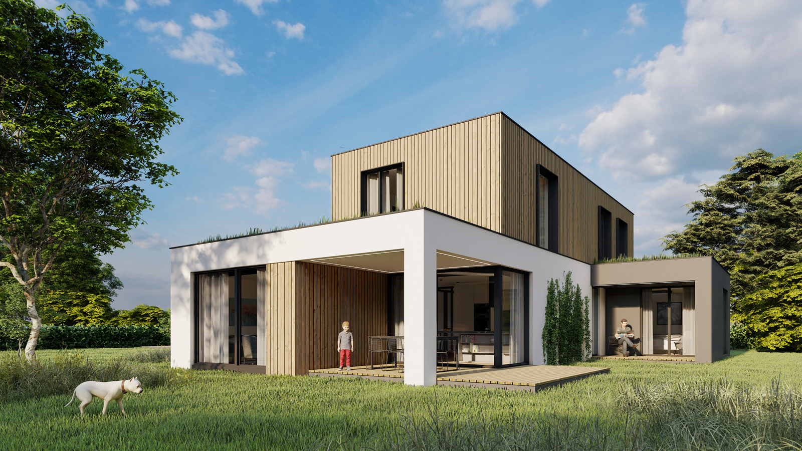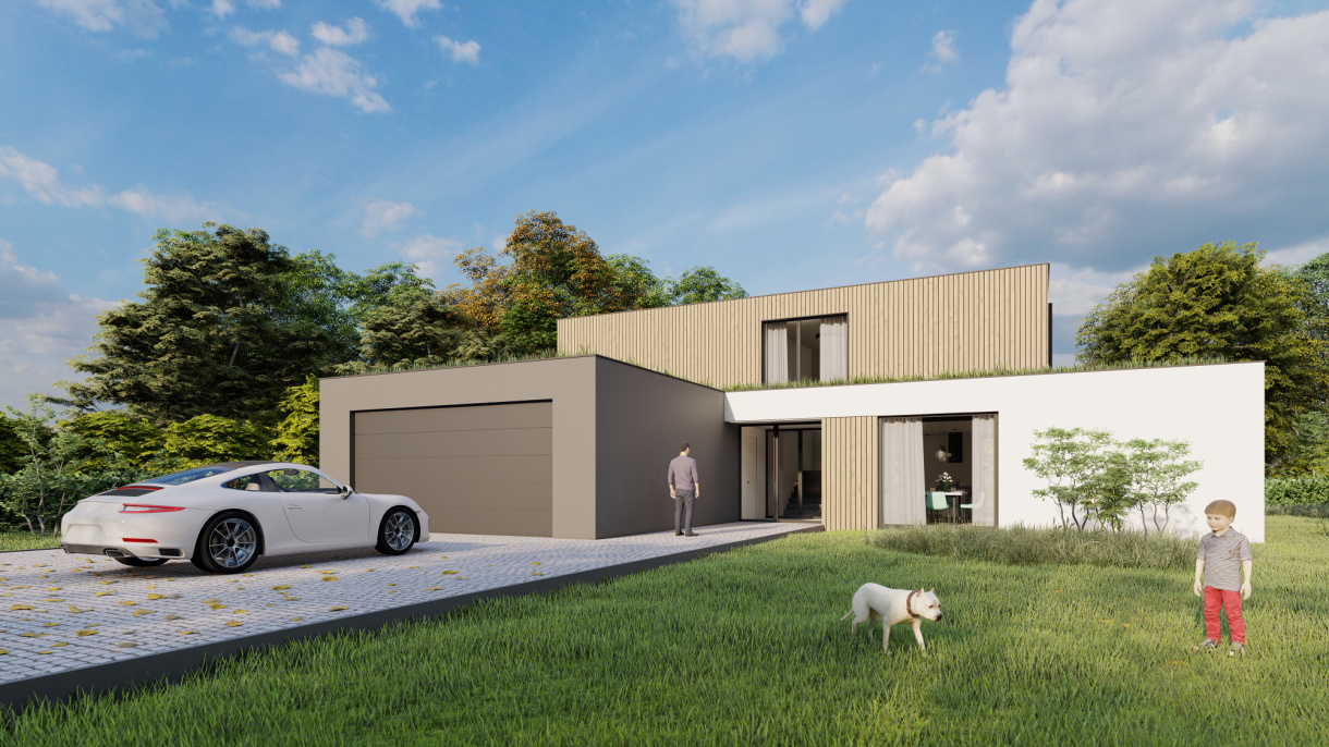 Jedná se o moderní patrový dům, který vyniká svou jednoduchou a zároveň elegantní tvarovou kompozicí. Ta je dohromady s vybraným materiálovým řešením základem pro nadčasový vzhled.